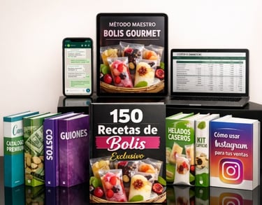 Llévate 150 recetas completas organizadas por categoría: frutales, cremosas, saludables, exóticas y más. Tu biblioteca de sabores definitiva y para siempre.